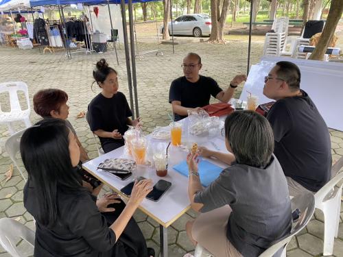 นางยุพา จันดี พัฒนาการอำเภอเมืองเชียงใหม่ พร้อมด้วยเจ้าหน้าที่พัฒนาชุมชน ประชุมจัดเตรียมความพร้อม สถานที่ กิจกรรมย้อมผ้าสีดำร่วมกับเครือข่าย OTOP อ.เมืองเชียงใหม่